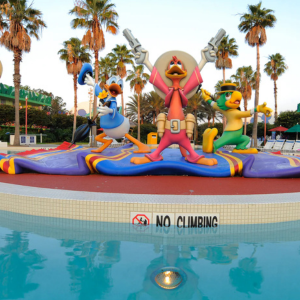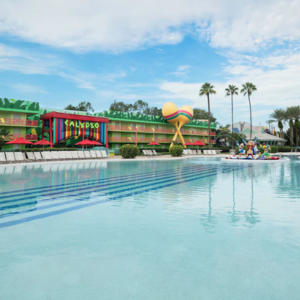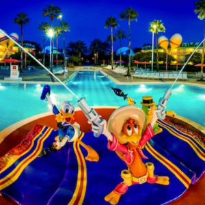 Calypso tiene como decoración tambores de conga, maracas y xilófonos, representativos de este género musical. También podrás ver al simpático trío de The Three Caballeros, en el centro de la piscina de Disney’s All-Star Music Resort. Esta sección es de habitaciones preferred, por su ubicación cercana al lobby.