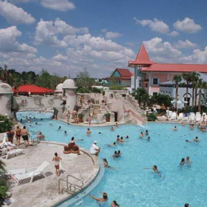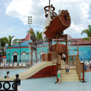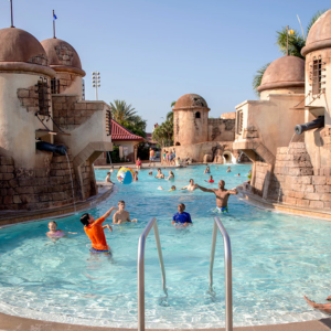 Disfruta de un baño refrescante en una de nuestras divertidas piscinas temáticas y con algunos Personajes de Disney.