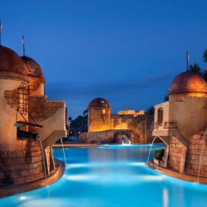 Asegura el fuerte en esta antigua ciudadela española con una piscina con entrada de poca profundidad, 2 toboganes y cañones de agua.