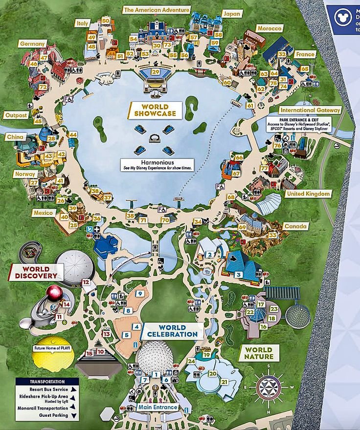 Llega al entrada trasera del parque (International Gateway), ideal si querés empezar el recorrido por el World Showcase.